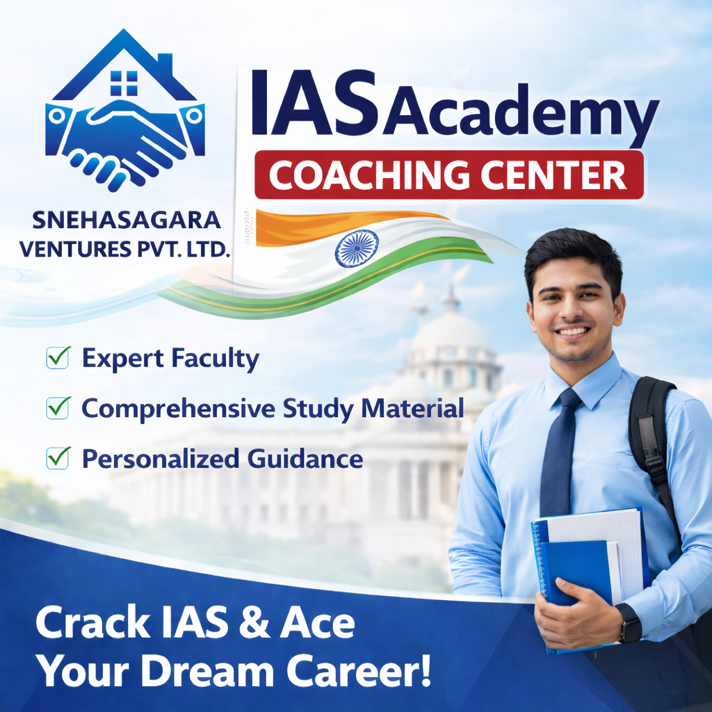 Snehasagara Ventures operates a dedicated IAS Academy focused on disciplined and structured preparation for civil services aspirants. The academy is built to support long-term IAS preparation through organised learning, academic consistency, and a focused classroom environment.